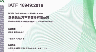 泰安昊達(dá)汽車零部件有限公司位于新泰市經(jīng)濟(jì)開發(fā)區(qū)嶅山路7號(hào),公司成立于2011年,是一家生產(chǎn)中、重型卡車底盤鑄鍛件、焊接件、發(fā)動(dòng)機(jī)配件的專業(yè)廠家,廠區(qū)占地面積101畝,2018年建設(shè)年產(chǎn)300萬件汽車零部件項(xiàng)目,項(xiàng)目總投資3.16億元,總建筑面積3.6萬平方米,是新泰市汽車裝配產(chǎn)業(yè)鏈的重點(diǎn)項(xiàng)目、2018年、2019年泰安重點(diǎn)項(xiàng)目,現(xiàn)已建設(shè)完畢,于2019年1月1日正式投入使用,設(shè)備新上覆膜砂自動(dòng)化鑄造生產(chǎn)線1條、熱模鍛生產(chǎn)線6條、自動(dòng)化焊接生產(chǎn)線10條、CNC加工設(shè)備200余臺(tái)套。 主要產(chǎn)品:中、重卡車底盤配件、轉(zhuǎn)向配件、中后橋氣室支架總成、中后橋配件、前橋轉(zhuǎn)向節(jié)臂、焊接配件、發(fā)動(dòng)機(jī)配件。產(chǎn)品主要銷往中國重汽集團(tuán)、市場份額約50%,位居行業(yè)鑄件產(chǎn)品前三。 公司擁有IATF16949:2016國際標(biāo)準(zhǔn)質(zhì)量管理體系認(rèn)證,擁有實(shí) ......